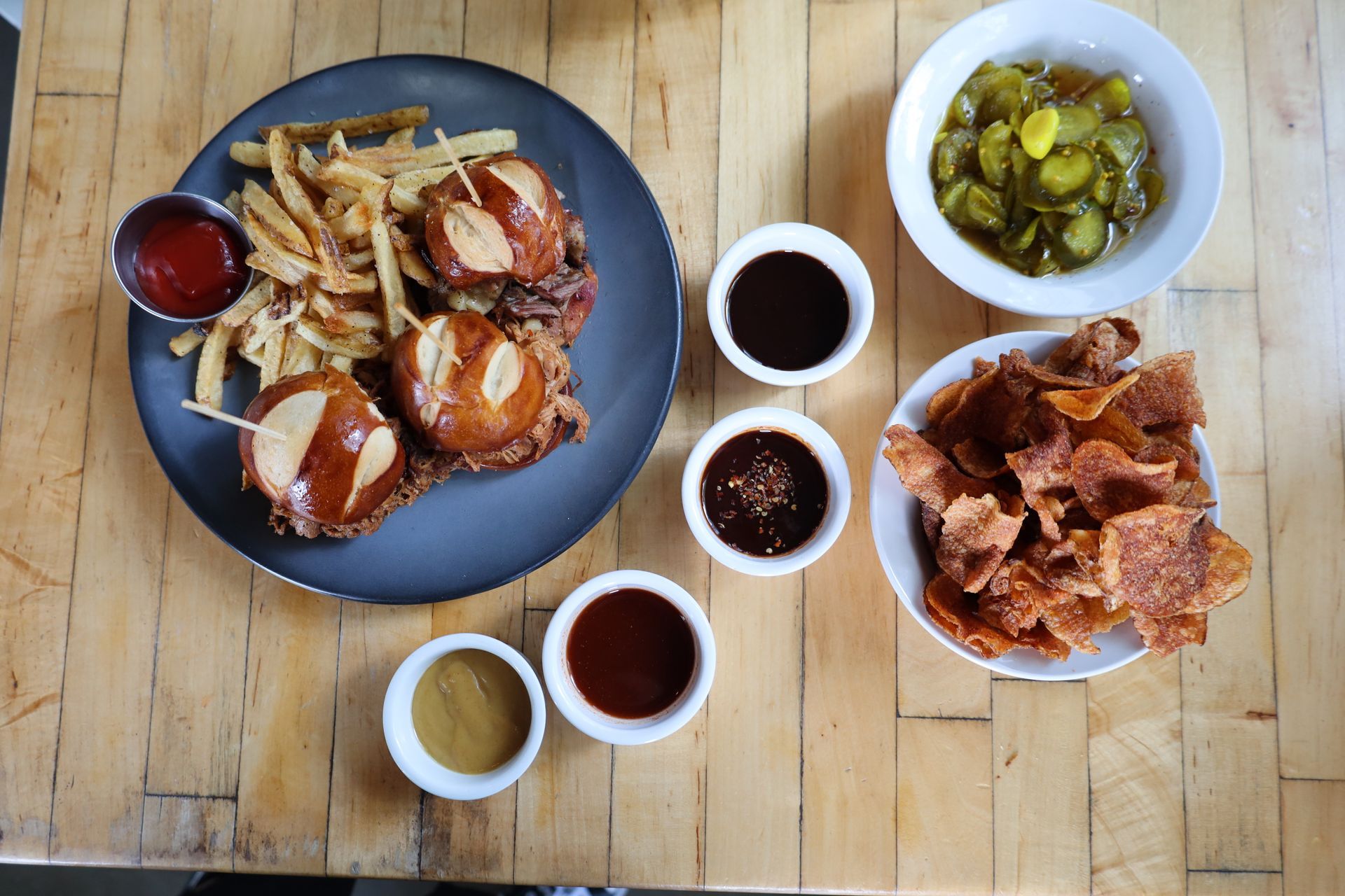 “Our philosophy is simple: We believe in providing the best barbeque and seafood in south Louisiana. We specialize in competition style barbeque from the Carolinas, Missouri, Texas and Tennessee regions. Located in Baton Rouge, we are committed to being a part of the community and having personal relationships with our farmers and purveyors. We strive to provide a warm, relaxing atmosphere where our guests can enjoy great food and drinks.”