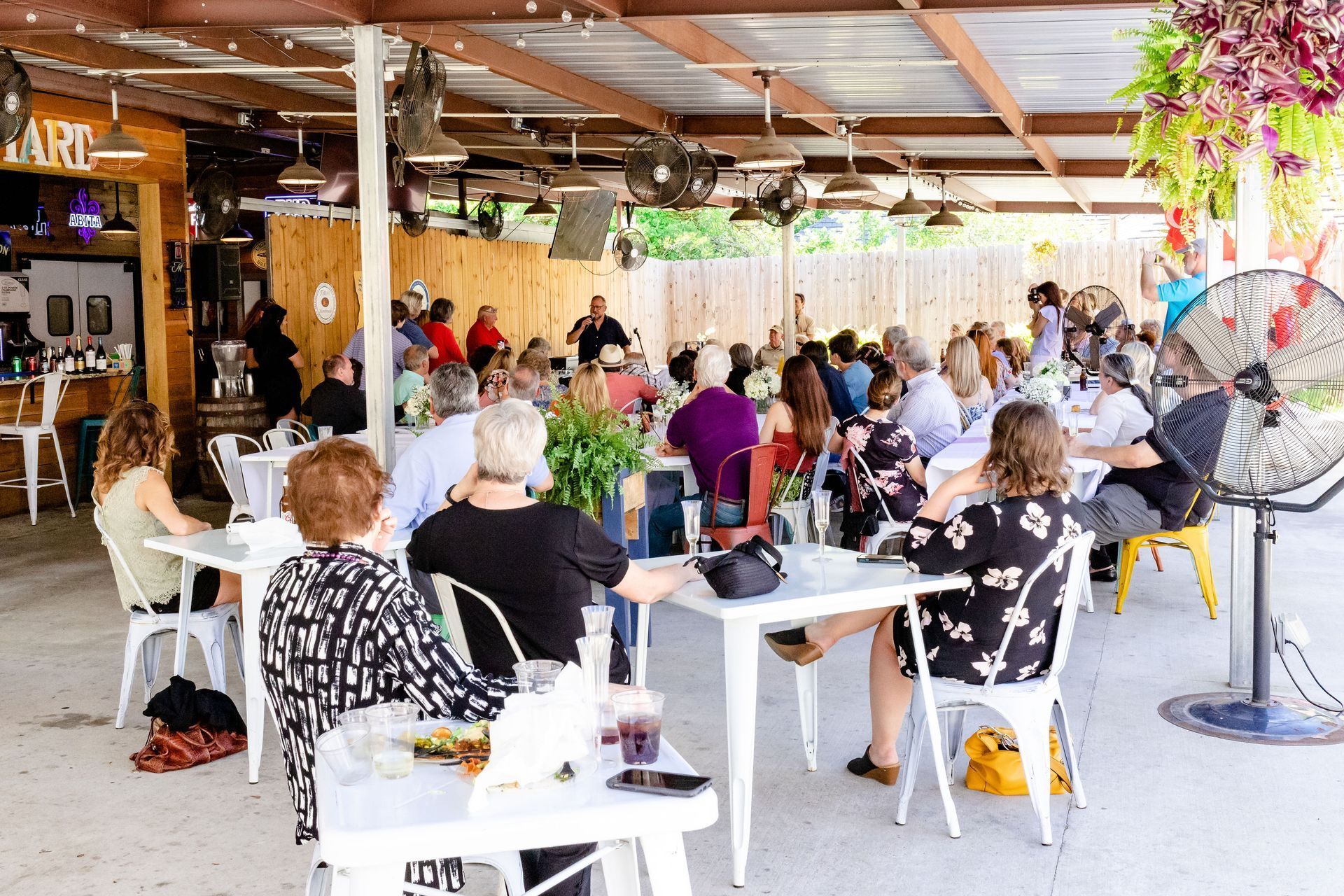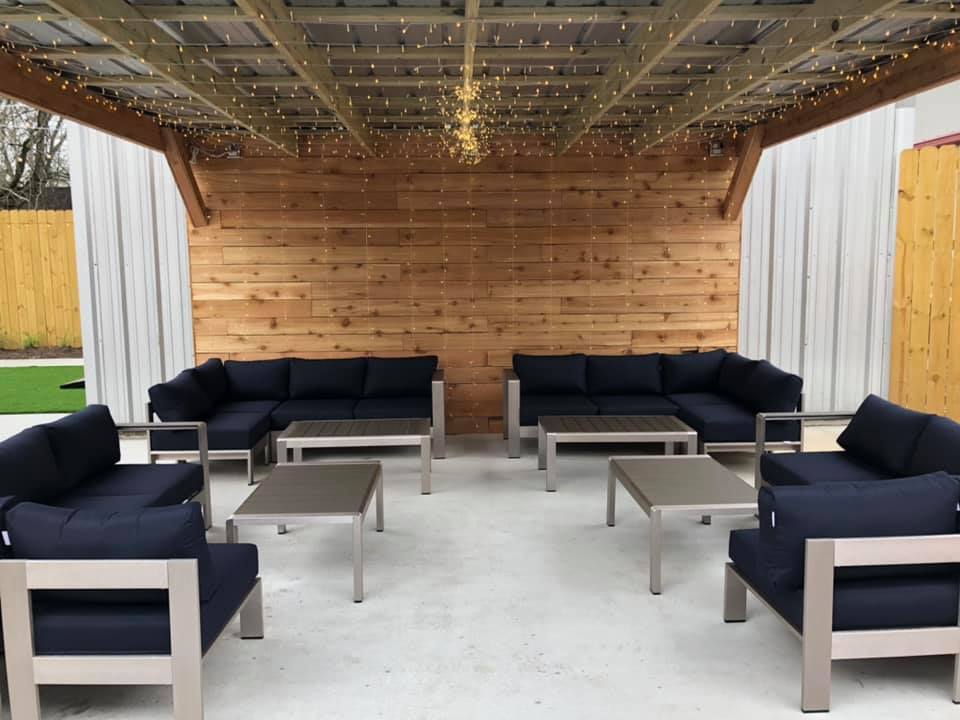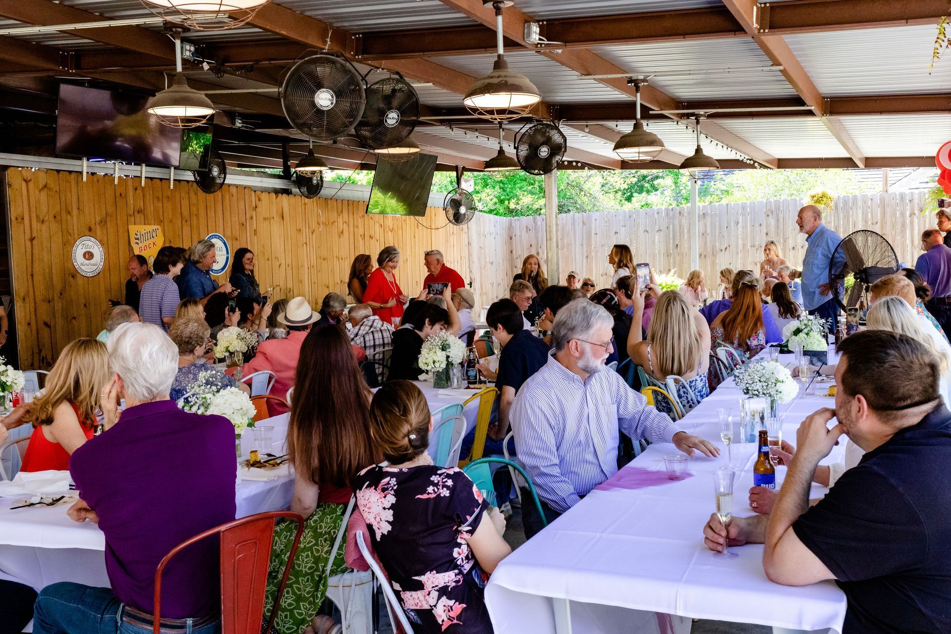 Join us on BRQ's outdoor patio, The Backyard. This area offers a full outdoor bar, comfortable lounge seating, tabletop seating, and areas of sunshine and shade, and can accommodate up to 250 people. This space is complete with televisions, lights, and the same great food and service you’ve come to expect from BRQ. The Backyard outdoor entertaining area is perfect for any party, any time of the year, any time of the day.